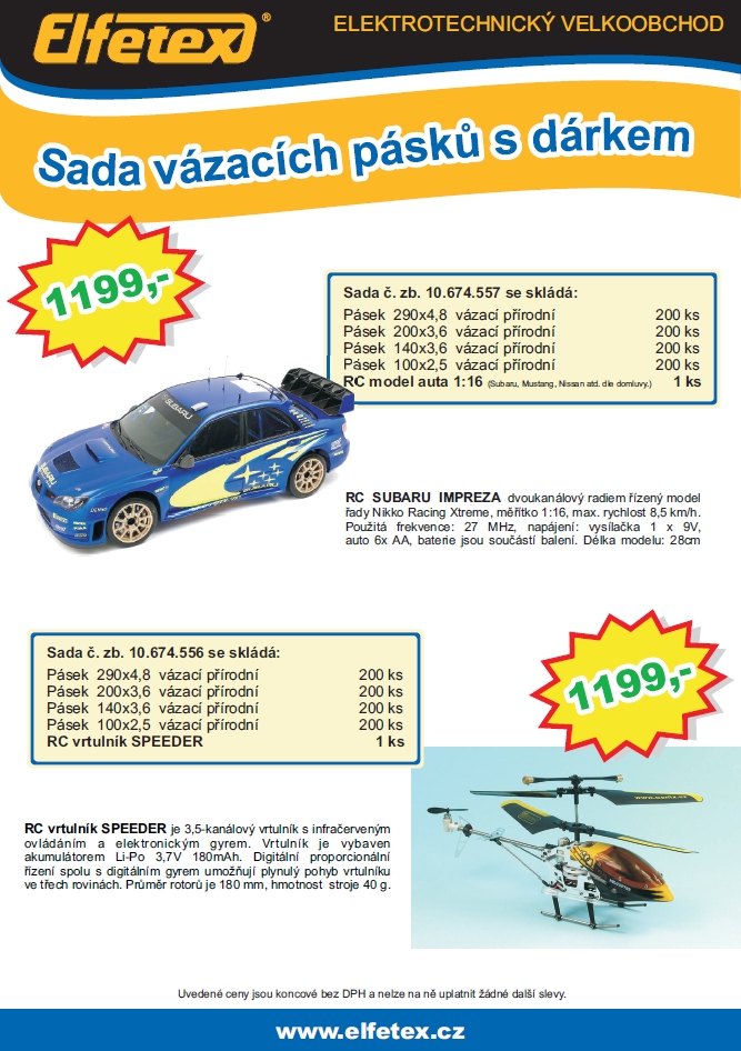Můžete si vybrat SUBARU IMPREZA (nebo jiná auta) a vrtulník SPEEDER. Cena sady je pouze 1 199 Kč!
