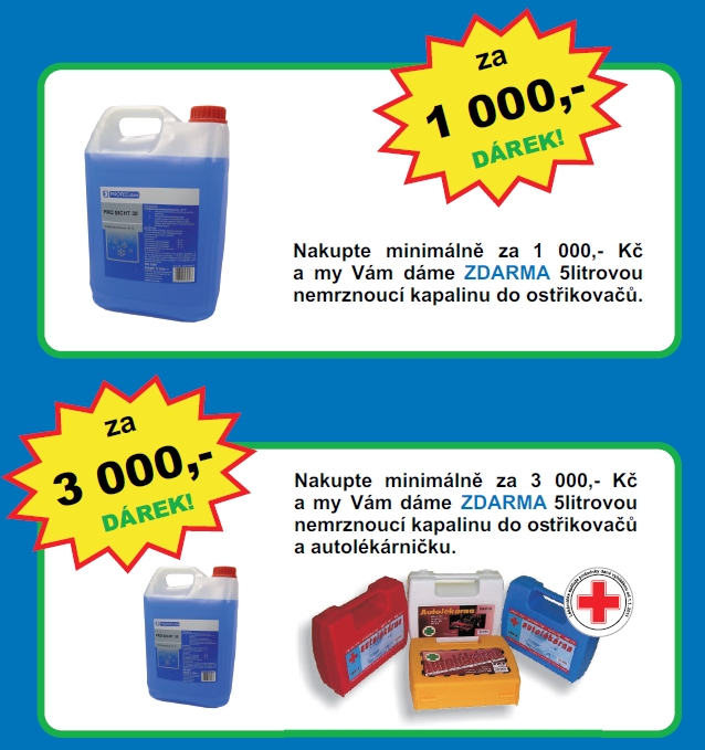 Nakupte minimálně za 1 000 Kč a my vám dáme zdarma 5litrovou nemrznoucí kapalinu do ostřikovačů!